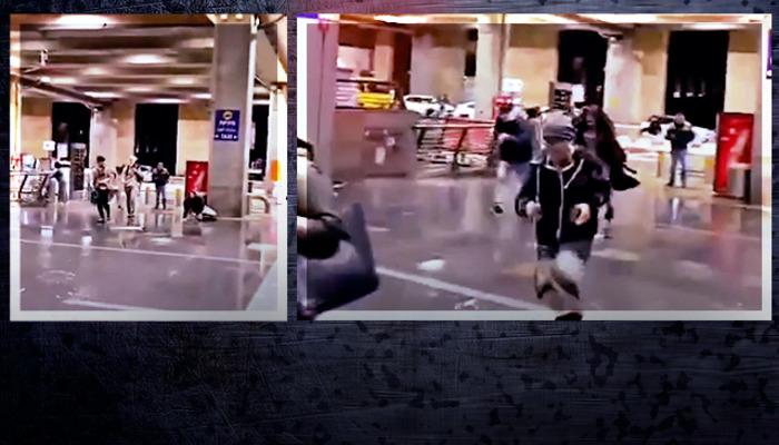 Tel Aviv'deki hava saldırısı alarmının ardından insanlar bir otelin merdivenlerine sığındı